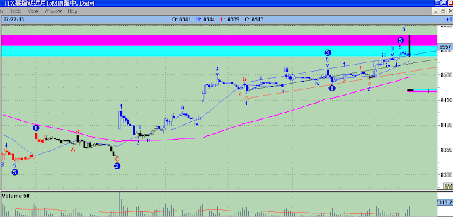 在美股站穩歷史新高的榮景下,台股短線不易大跌,但整體大戶不進場的情況下,也不易站上八跟六的波浪鐵板壓力帶,是故,就當高檔盤頭換手炒作,農曆年後再小心摟。