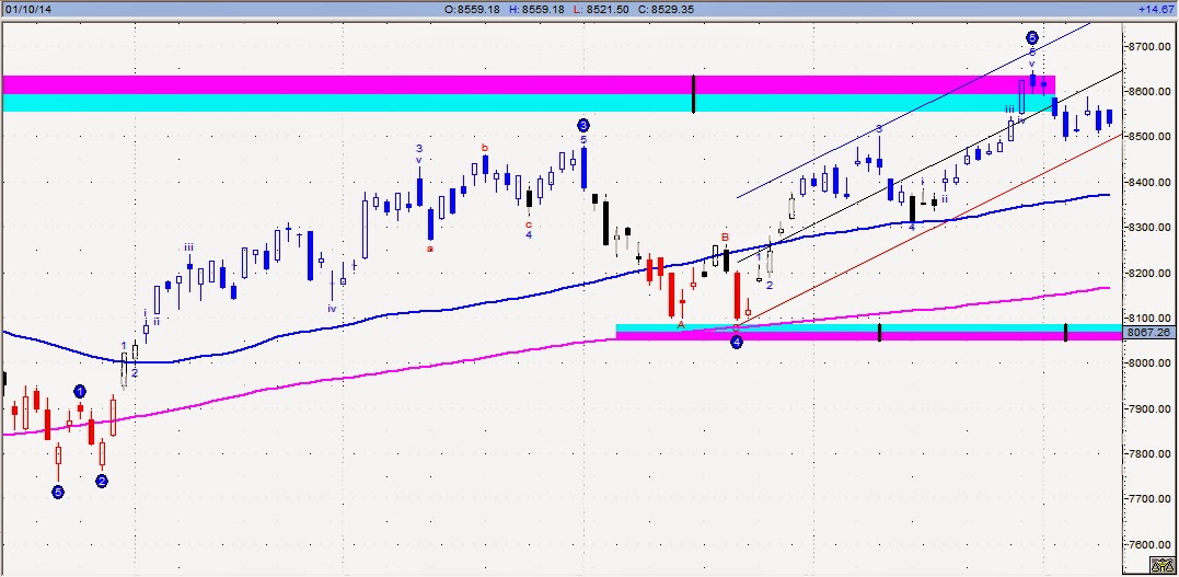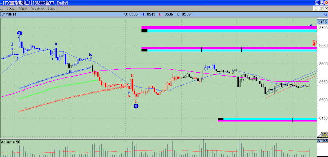 八跟六到了,報紙此時寫元月行情來了、現股當沖也帶來成交量、財經機構預測2014年台股要漲到9字頭的一堆,此時,大盤在12/31封關見8647高點後,就此拉回整理,看股市文章最想知道的是找到些對未來的看法,會一直看就代表這篇文章追蹤下來有其參考性(所以你才會一直看週報),我們就用科學性的角度來看台股未來可能走勢。