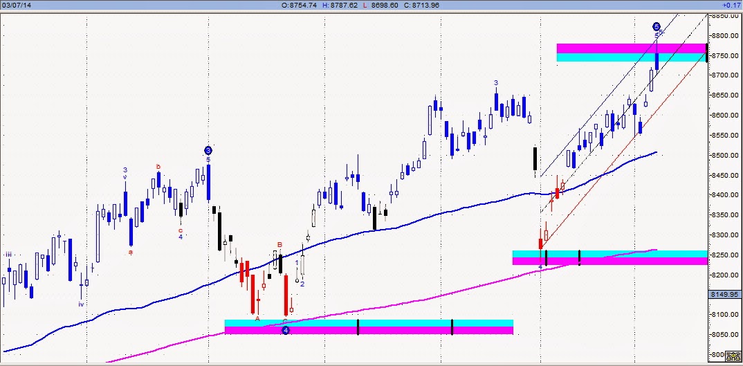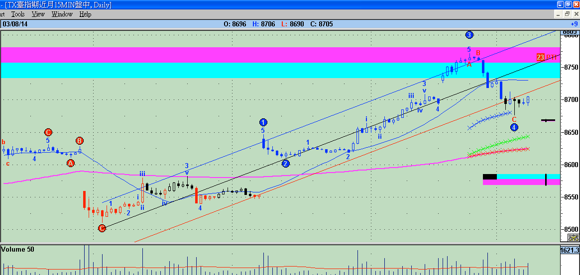 § 1-4 大盤日線波浪與台指期分時波浪走勢圖 3/7收盤