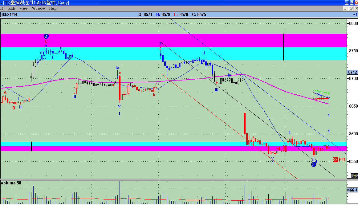 § 1-4 大盤日線波浪與台指期分時波浪走勢圖 3/21收盤