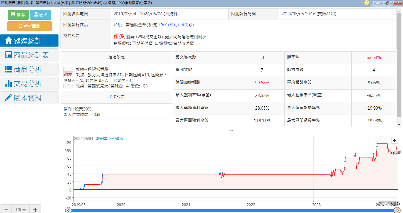 甚至轉賣為買的現象,邏輯上就是有第四波快結束的影子,此時切入賭第五波快要出現,回測績效