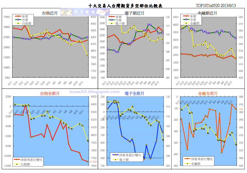 十大交易人期貨留倉多空部位比較表 6/13 收盤