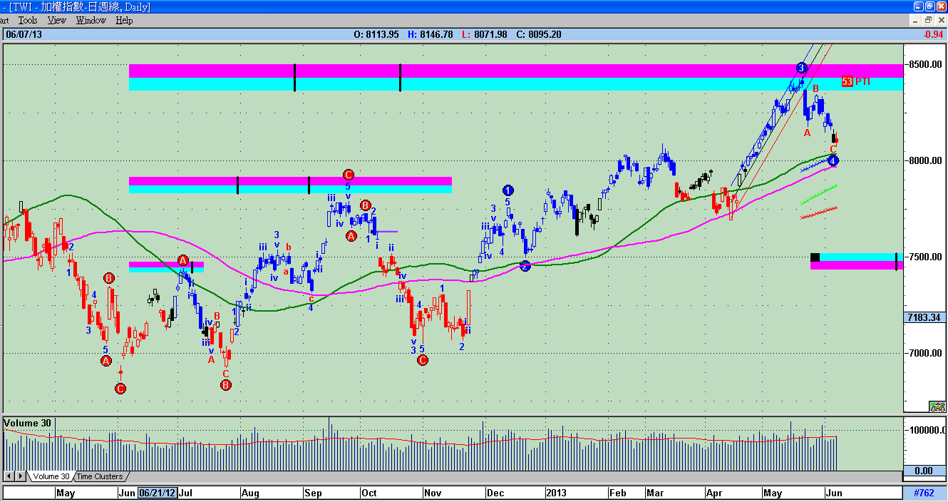 § 1-4 大盤加權指數日線波浪走勢圖 6/7 收盤