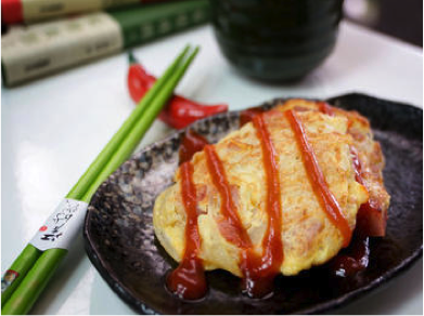 歐姆蛋是「Omelette」翻譯過來的,也稱西式蛋餅、日式的蛋包飯。其特色是配料任意搭配,蛋口感滑嫩,搭配番茄醬甚是美味。一般都是煎成圓形折成半圓形,如同蛋包飯,而哇菜大廚改以煎成小圓片,很適合食量小的小朋友,或是帶便當的朋友喔!