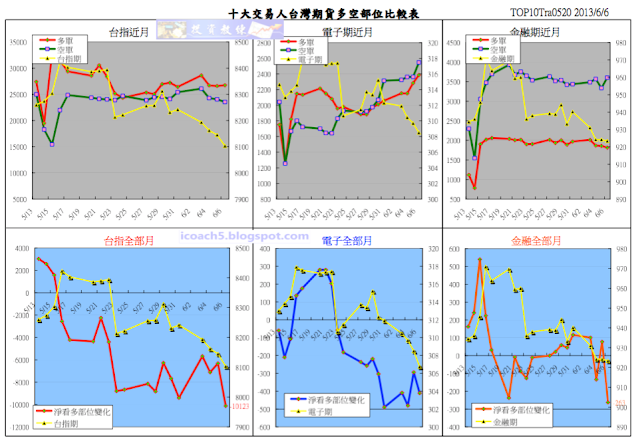 十大交易人期貨留倉多空部位比較表 6/6 收盤
