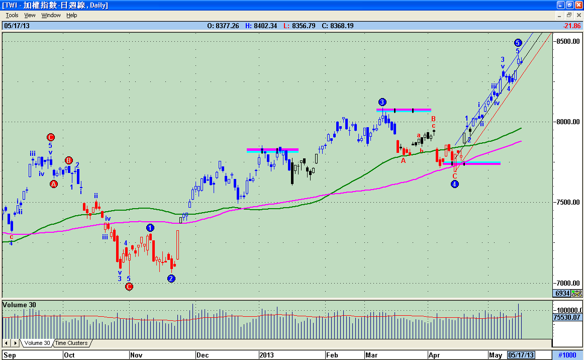 § 1-4 大盤加權指數日線波浪走勢圖 5/17 收盤
