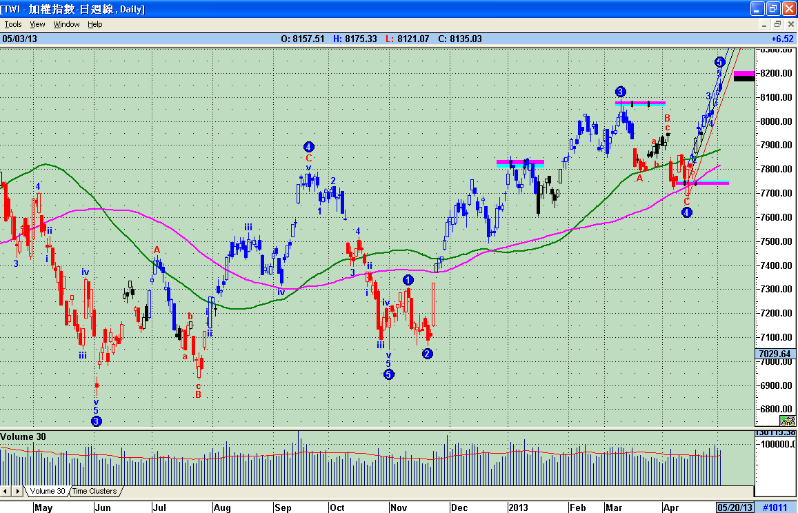 § 1-4 大盤加權指數日線波浪走勢圖 5/3 收盤