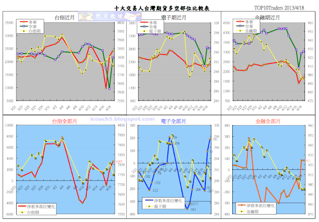 十大交易人期貨留倉多空部位比較表 4/18 收盤