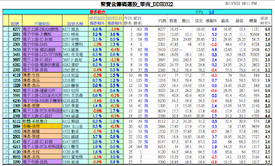 3/22日收盤之「聚寶盆籌碼智慧選股」看多模組EXCEL即時連結畫面(奇美電第6名):
