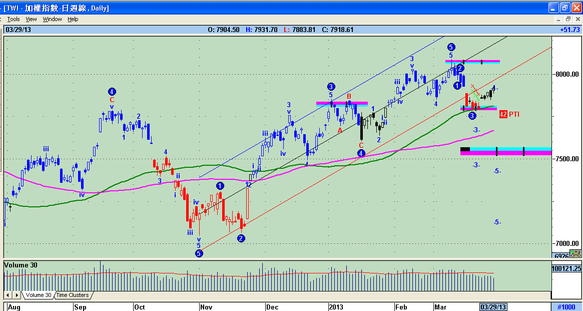 § 1-4 大盤加權指數日線波浪走勢圖 3/29 收盤