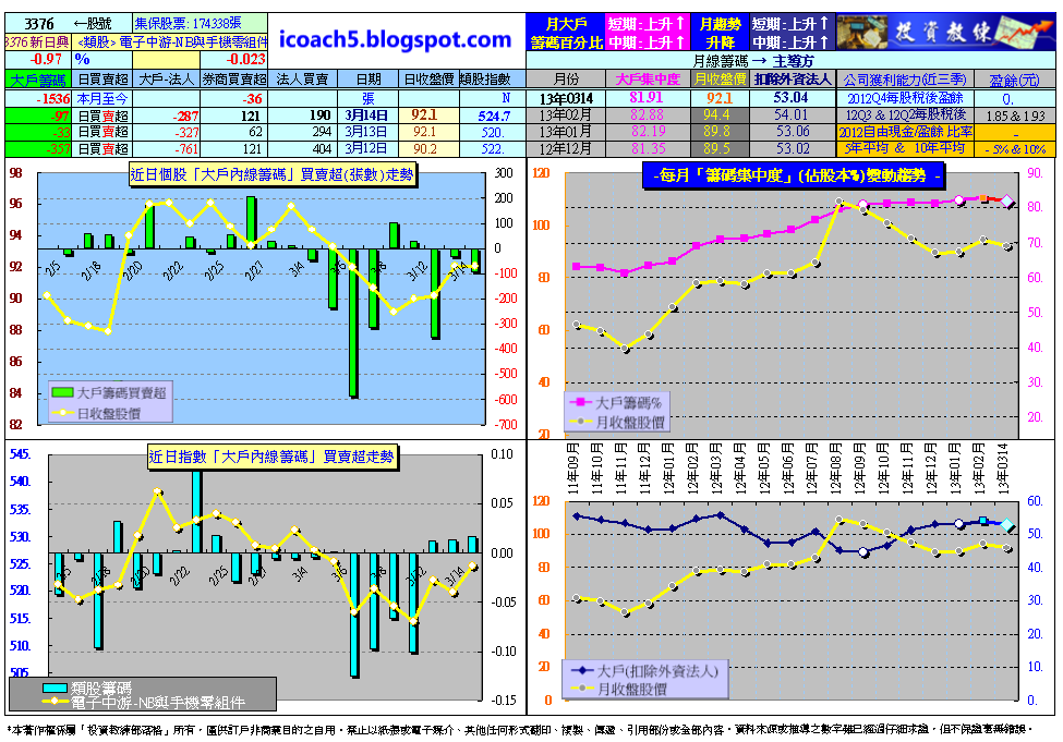 3/14日收盤新日興「大戶內線籌碼」監控表: