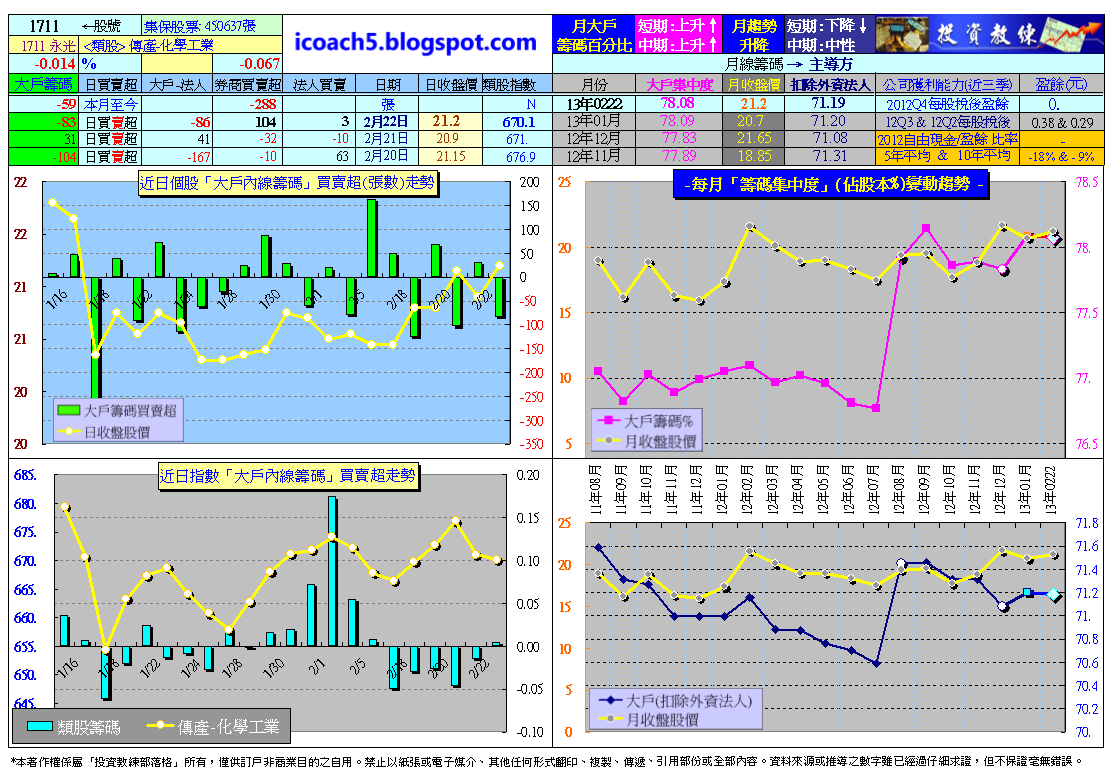 2/22日收盤永光「大戶內線籌碼」監控表: