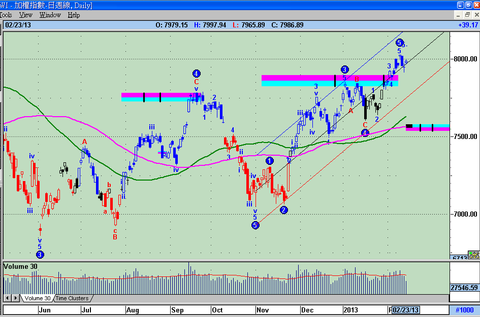 § 1-4 大盤加權指數日線波浪走勢圖 2/23 收盤