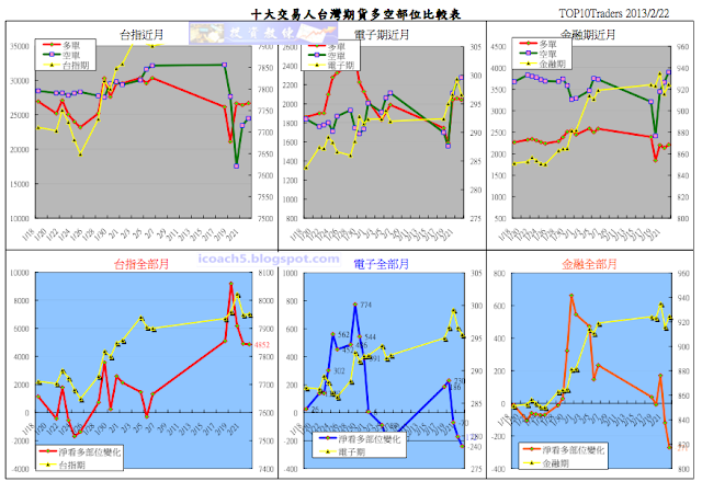 十大交易人期貨留倉多空部位比較表 2/22 收盤