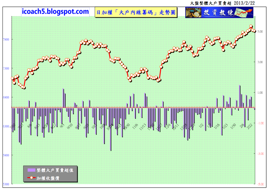 § 1-3 整體大盤「大戶內線籌碼」走勢圖 2/22 收盤