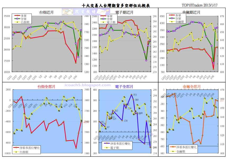 十大交易人期貨留倉多空部位比較表 1/17 收盤