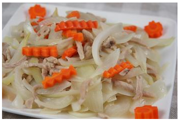 洋蔥含大蒜素有很強烈的刺激味。切洋蔥時這會刺激眼睛和鼻子而流淚。雖然生洋蔥辛辣,但烹飪後就沒有刺激味。若想減少生洋蔥的刺激度,請把洋蔥對半切開,放入涼水浸泡一下再切時就不會流淚囉。這道菜在小時候的記憶中常會拌著黑木耳一起炒香,配上白飯,我們兄弟可以吃上好幾碗呢!