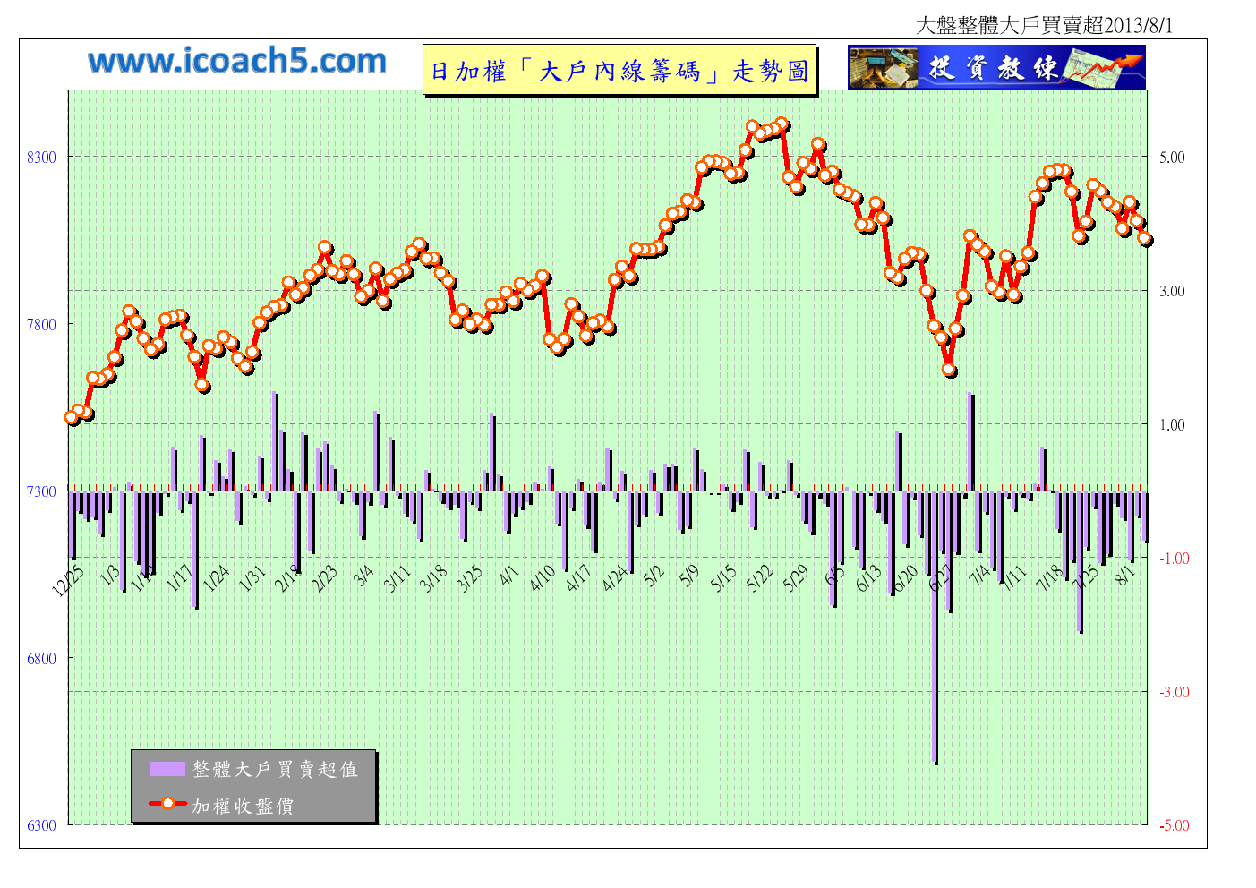 § 1-3 整體大盤「大戶內線籌碼」走勢圖 8/2 收盤