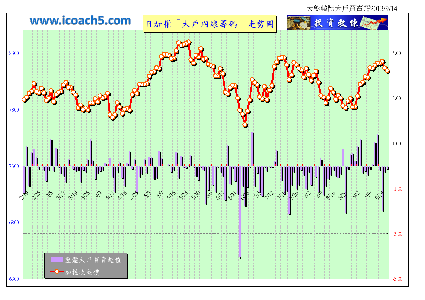 § 1-3 整體大盤「大戶內線籌碼」走勢圖 9/14收盤