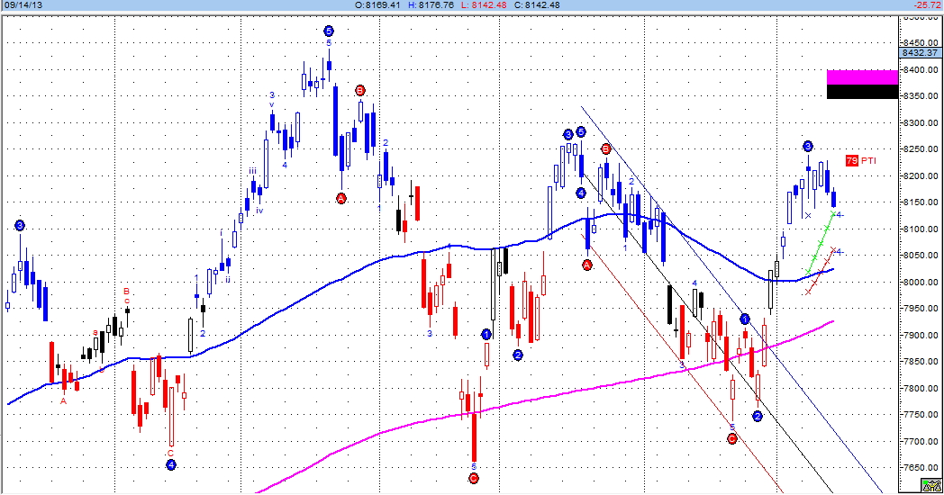 整體大戶籌碼的領先性在本波上漲再度印證,同理可證的是,上週出現大戶賣超的狀況,未來的第四波拉回得小心提防,配合波浪圖來看,上檔波浪鐵板壓力帶在8350-8400點,若整體大戶籌碼沒有演出買超戲碼,只怕不容易站上,則台股在政治動盪的九月中下旬恐怕有第四波震盪的可能,唯多一點的地方是破高指數PTI值為78。