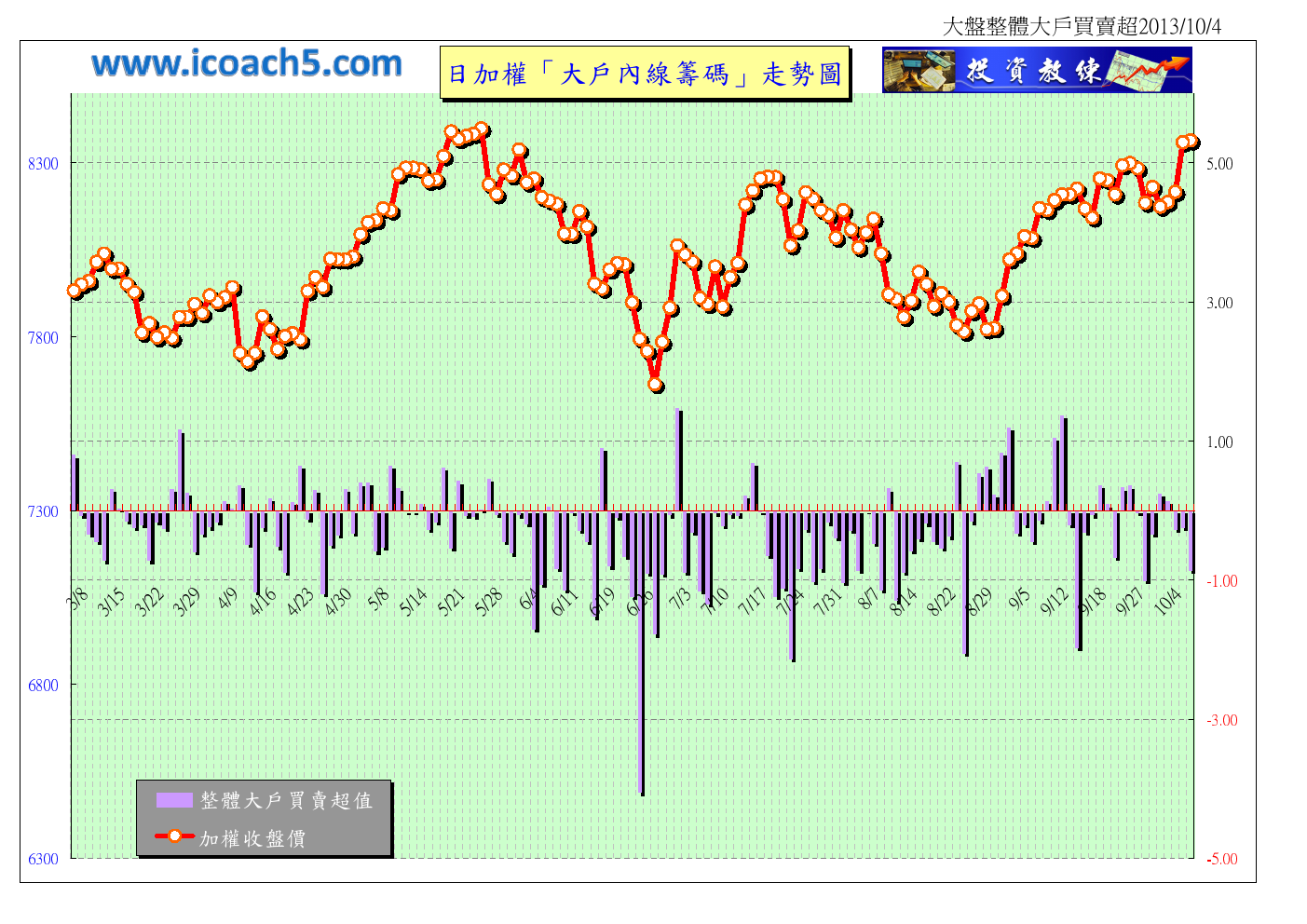 § 1-3 整體大盤「大戶內線籌碼」走勢圖 10/4收盤