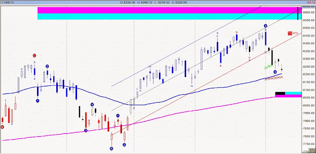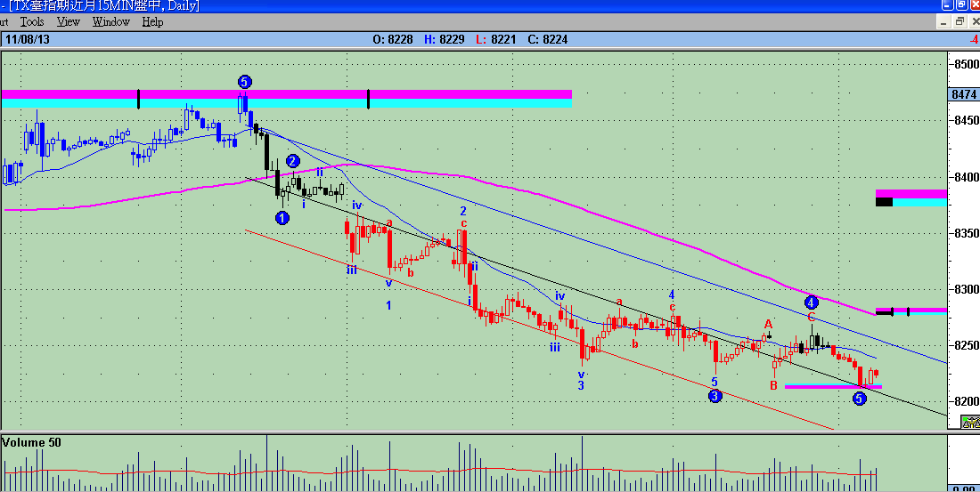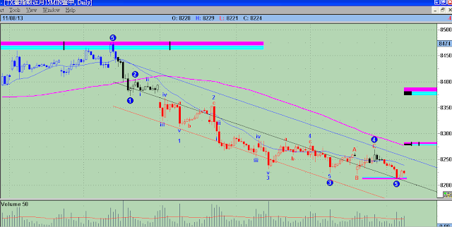 § 1-4 大盤日線波浪與台指期分時波浪走勢圖 11/8收盤