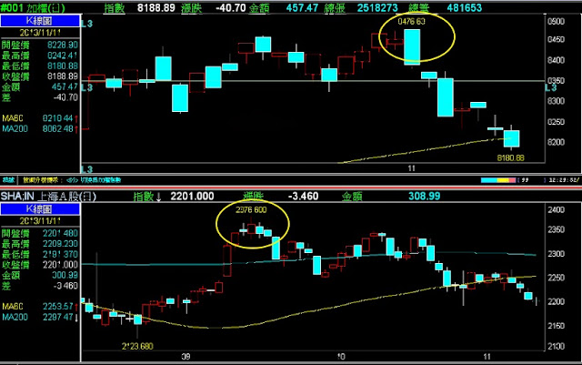 既然台股走勢搭上了上海A股的軌跡在走,本期週刊就繼續追下去。